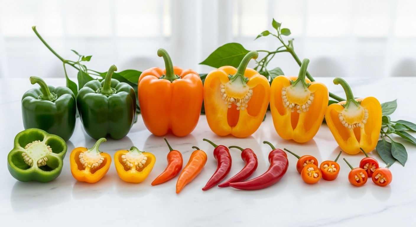 ピーマンとパプリカは同じベル群に属しますが、両者にはいくつかの明確な違いがあります。